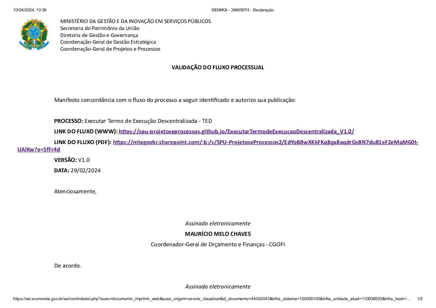 Declaração de Validação - Executar Termo de Execução Descentralizada